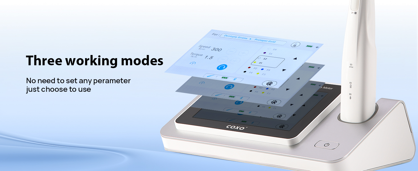 - Easy to Operate: color ultra large touch screen, instantly responsive; The controller and host can be used independently or connected via Bluetooth, with wireless binding; Built in root measuring line, rotatable, illuminated mini head; Very convenient to use in clinical practice