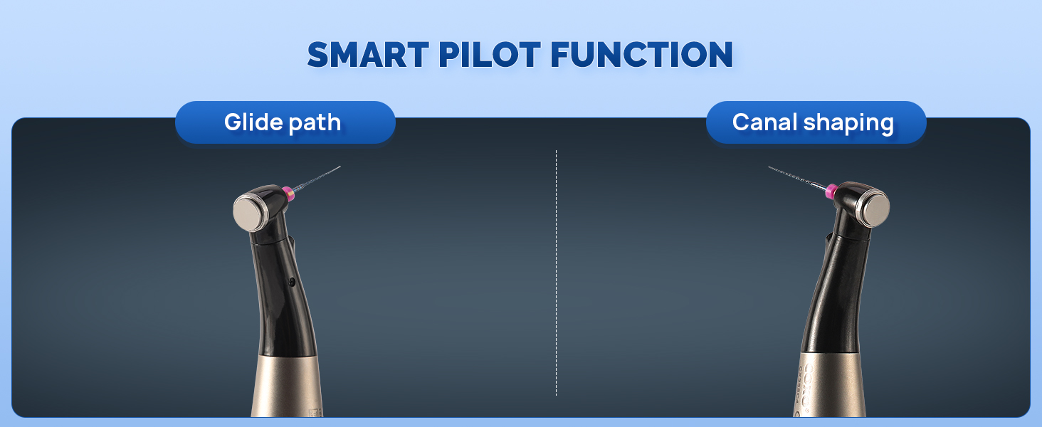 - Intelligent Cruise Control: No need to set speed and torque, intelligently expand the root canal, first expand 360 degrees, encounter resistance and expand back and forth (forward 150 degrees, reverse 30 degrees), reach the narrow area of the root tip and slowly advance, then reverse and exit when reaching the root tip. It can be used for ordinary, simple, and complex root canals