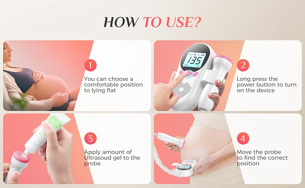 Este monitor de corazón fetal en casa es seguro con baja potencia de salida. Su tamaño portátil y el gel incluido permiten un monitoreo pacífico en cualquier lugar.