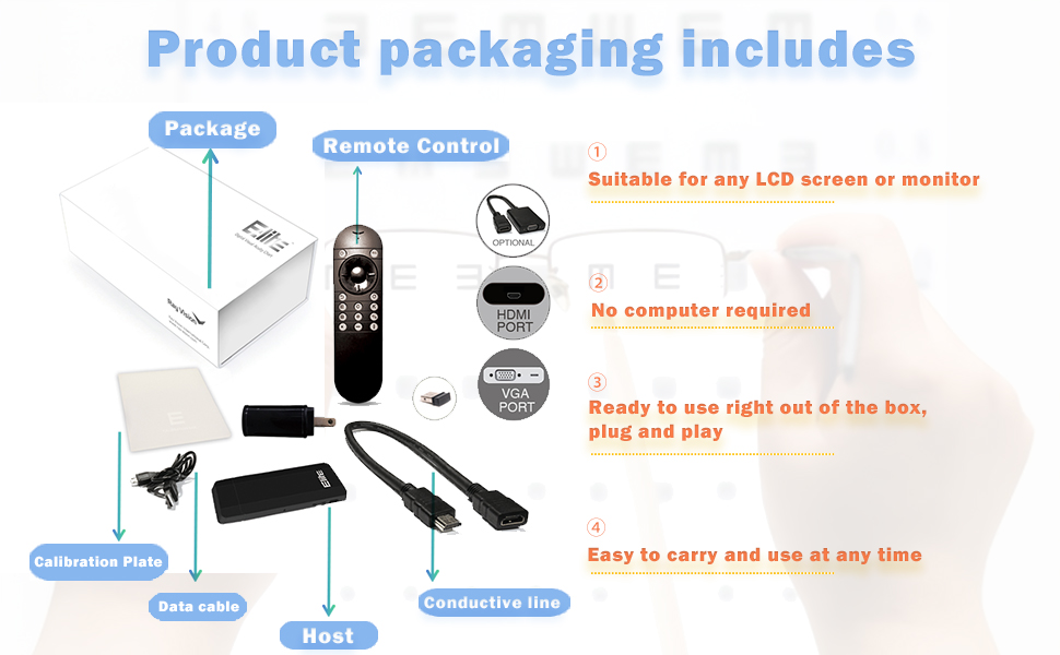 - Wide compatibility: This all-in-one eye chart is designed to work with all kinds of screens, without the need to connect to a computer. Its compact structure makes installation easier and is compatible with all types of monitors. (With HDMI interface)